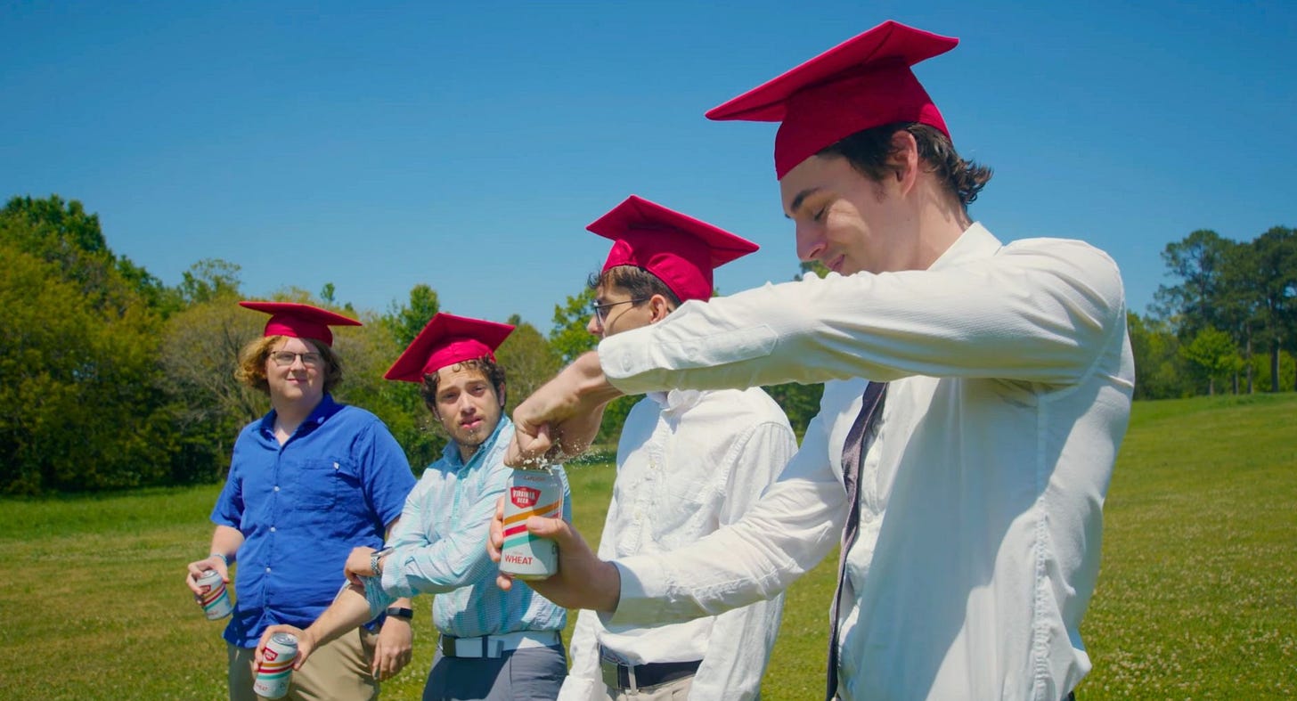 The whole ending is a Beer Mile. It’s all of us chugging beer and running, celebrating graduation. The thing is, we weren’t acting! We did an actual Beer Mile! Which, if you’ve ever done one of those … man, are those rough! You are sprinting. It was the 90-degree Alabama heat, we’re in button-ups and long pants, and we’re just chugging beers and having to sprint across these hills. After we filmed, we had to sit on the grass to catch our breath.