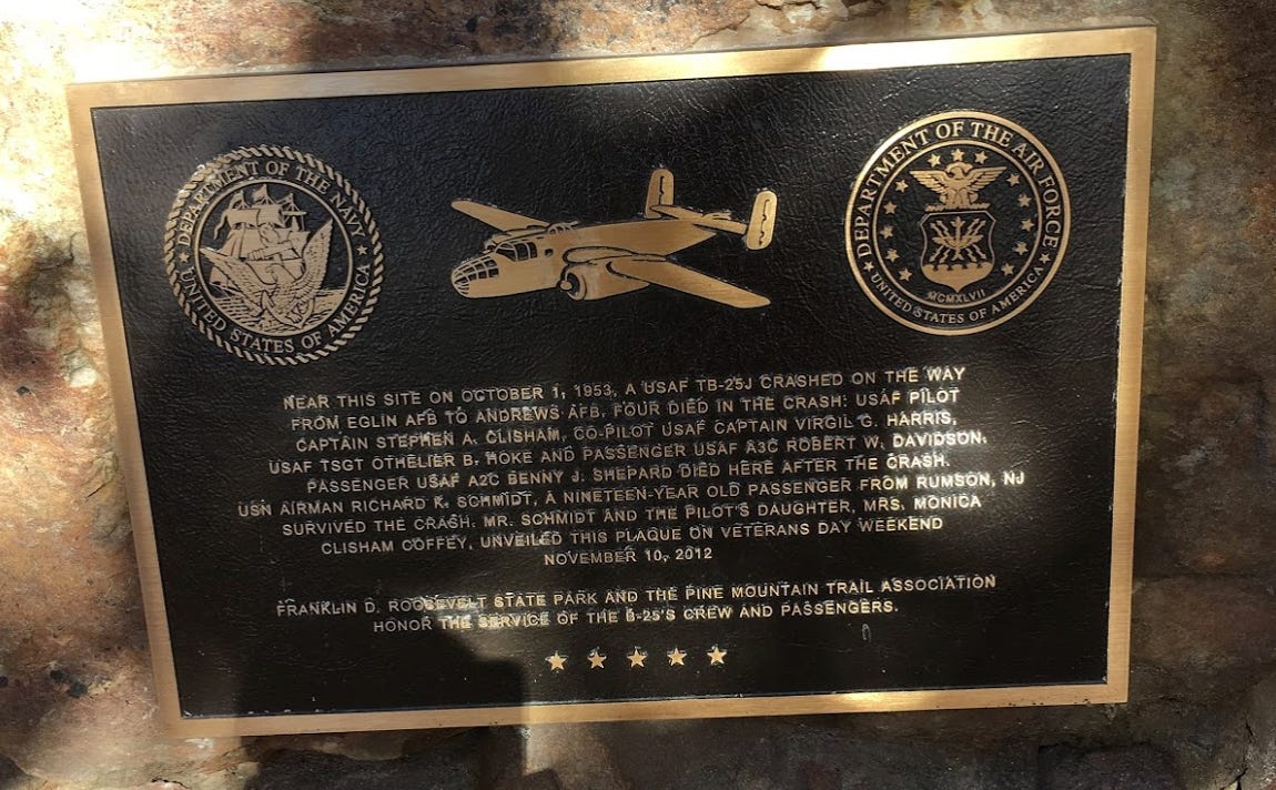 The plane was a B-25 out of Eglin Air Force Base on the Gulf Coast of Florida, headed to Andrews Air Force Base just outside Washington, D.C. Bad weather had forced the plane to divert westward from Atlanta, and the pilot opted to use visual flight rules to navigate his way from Columbus, Ga. up to Atlanta — but the heavy fog disguised the remote, dark Pine Mountain until it was too late. The pilot, Capt. Stephen A. Clisham, pulled back on the stick in a desperate, futile attempt to clear the mountain. They wouldn’t make it.