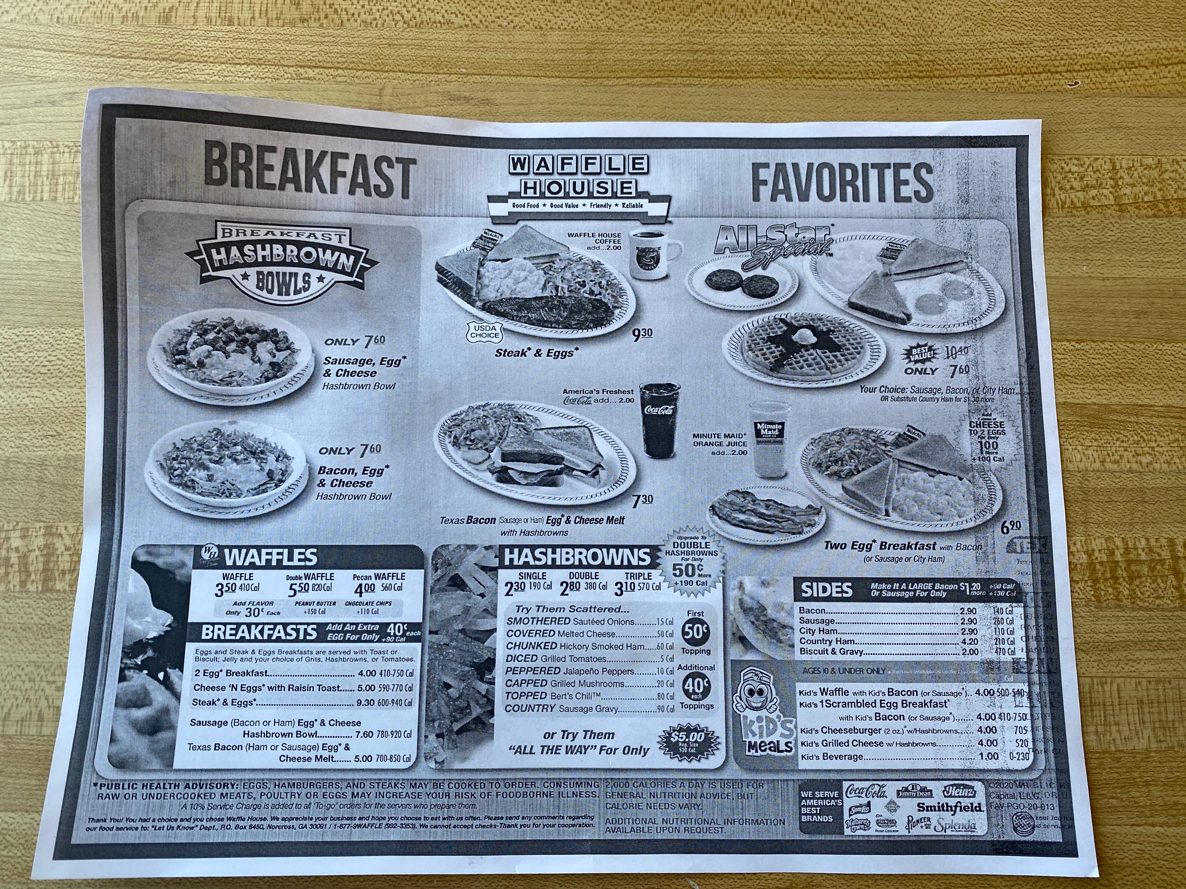 I ate at a restaurant for the first time in six weeks a few days ago. The state of Georgia authorized restaurants to open if they desired, and the wondrous Waffle House took Gov. Brian Kemp up on his highly debatable offer. I wrote up my visit for Yahoo; short version, things won’t be normal anywhere for a long time to come, starting with the disposable menus as seen above.