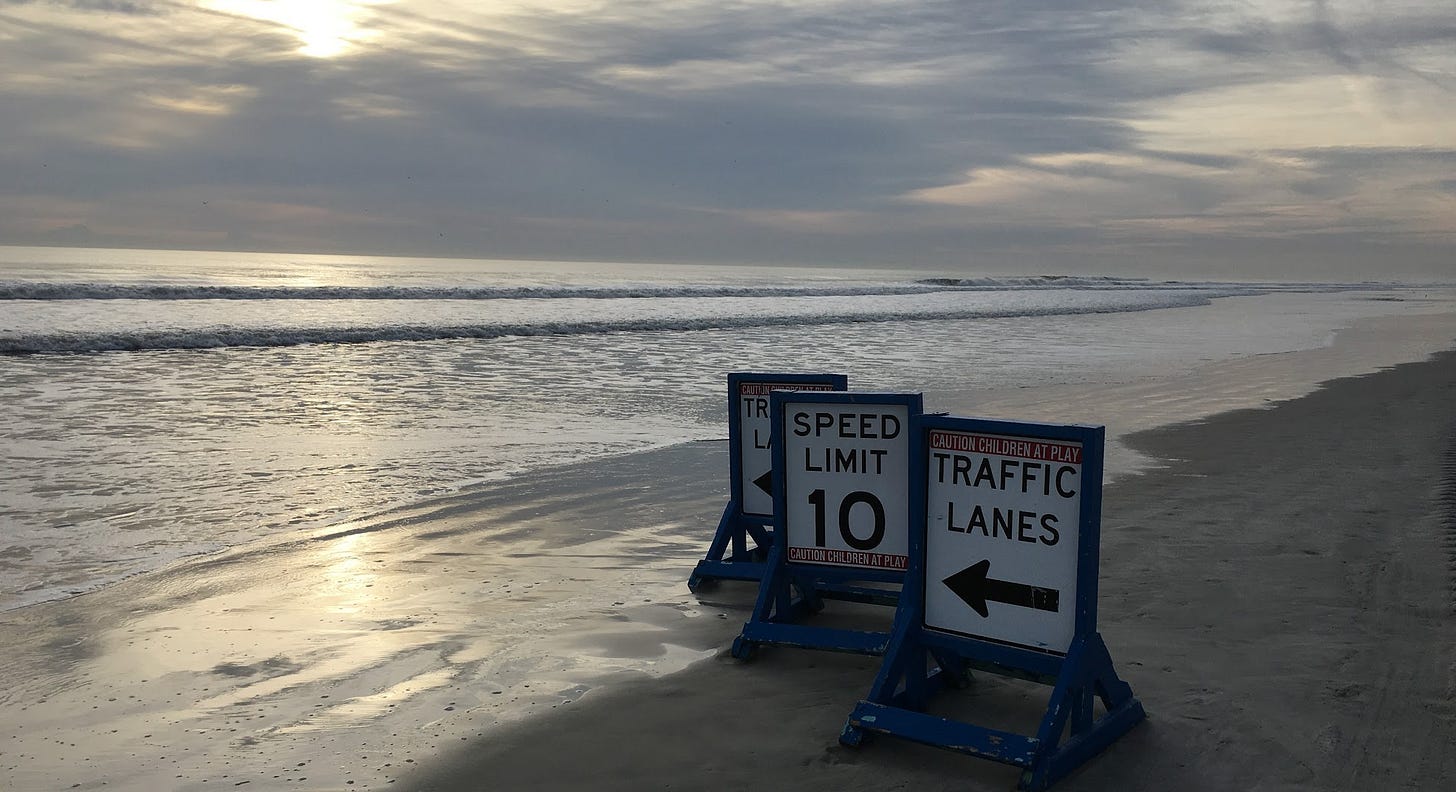 These days, you can still drive on Daytona Beach. You can take your four-wheeler or minivan or — hypothetically speaking, of course — rental car out there right to the edge of the surf. But local law enforcement recommends you go just a little bit slower…