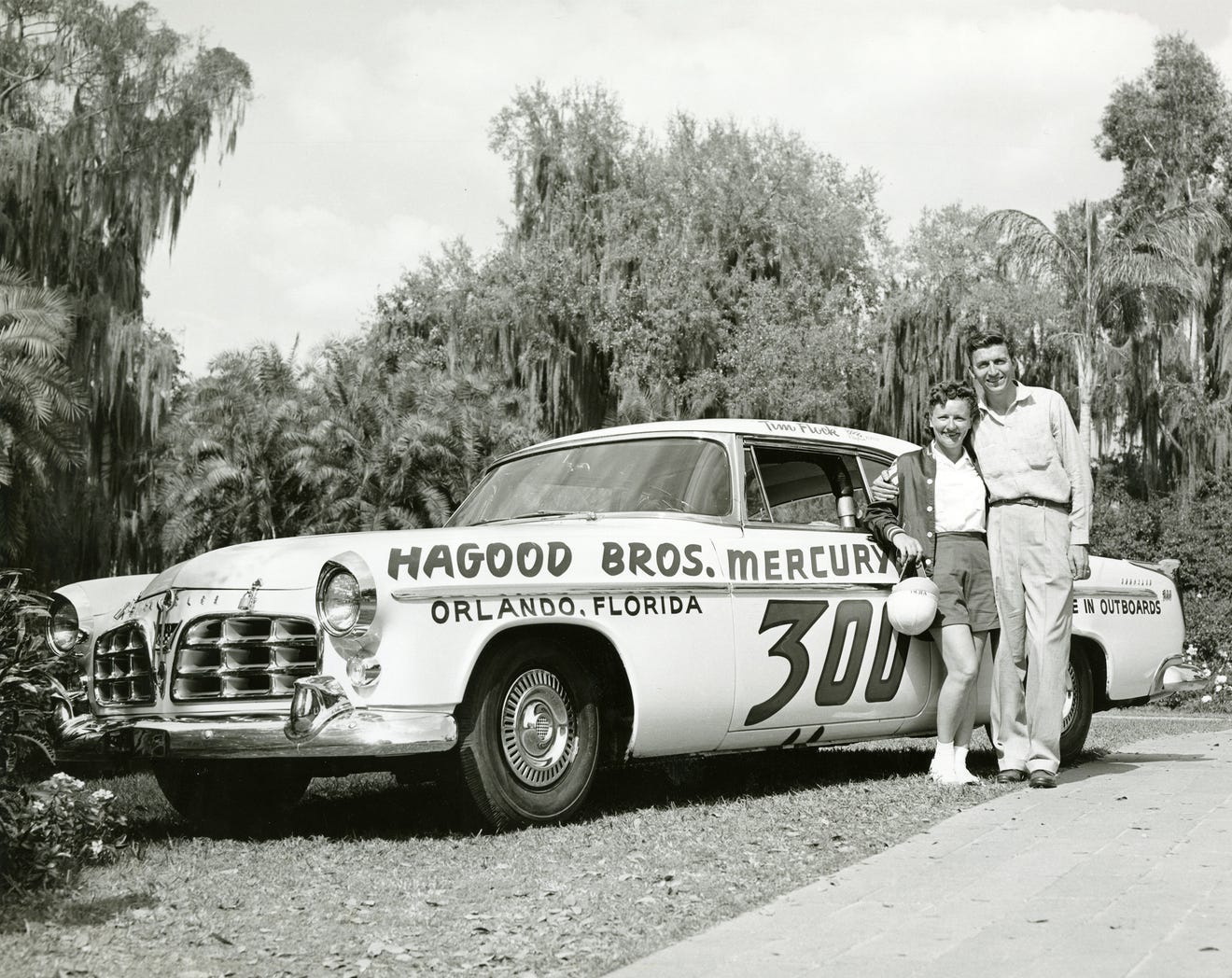 She caught the eye of Chrysler’s marketing team, which put her on the beach to test-drive their topline Chrysler 300s in the late 1950s. She set what’s billed as the fastest record for a stock-bodied (i.e. showroom) car at Daytona by hitting 150.375 miles per hour.